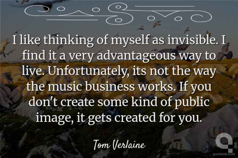 I like thinking of myself as invisible. I find it a very advantageous way to live. Unfortunately, its not the way the music business works. If you don't create some kind of public image, it gets created for you.