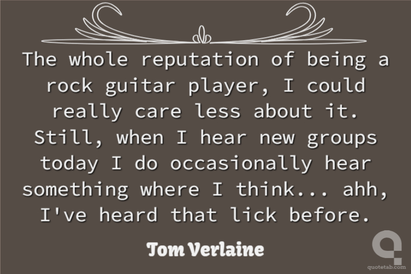 The whole reputation of being a rock guitar player, I could really care less about it. Still, when I hear new groups today I do occasionally hear something where I think... ahh, I've heard that lick before.