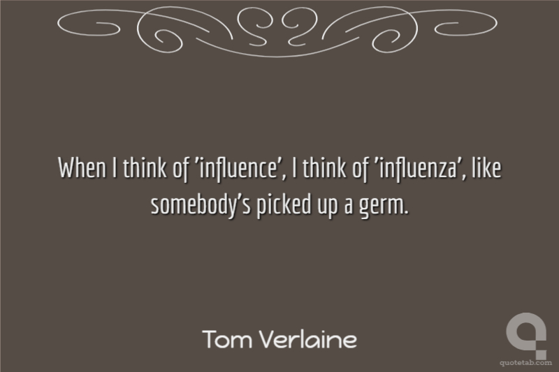 I recently realized that Television has influenced a lot of English bands. Echo and the Bunnymen, U2, Teardrop Explodes - it's obvious what they've listened to and what they're going for. When I was sixteen I listened to Yardbirds records and thought, "God, this is great." It's gratifying to think that people listened to Television albums and felt the same.