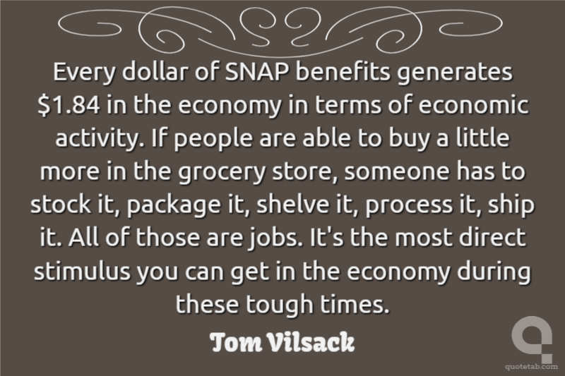 Every dollar of SNAP benefits generates $1.84 in the economy in terms of economic activity. If people are able to buy a little more in the grocery store, someone has to stock it, package it, shelve it, process it, ship it. All of those are jobs. It's the most direct stimulus you can get in the economy during these tough times.