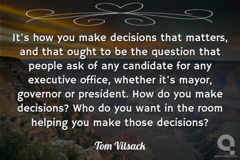 It's how you make decisions that matters, and that ought to be the question that people ask of any candidate for any executive office, whether it's mayor, governor or president. How do you make decisions? Who do you want in the room helping you make those decisions?