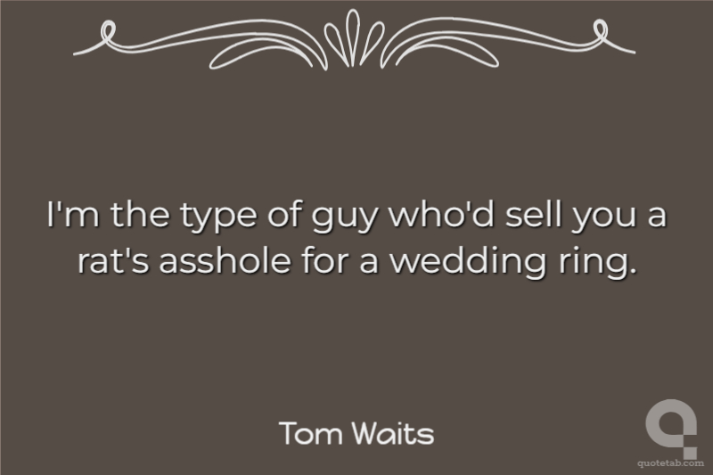 I'm the type of guy who'd sell you a rat's asshole for a wedding ring.
