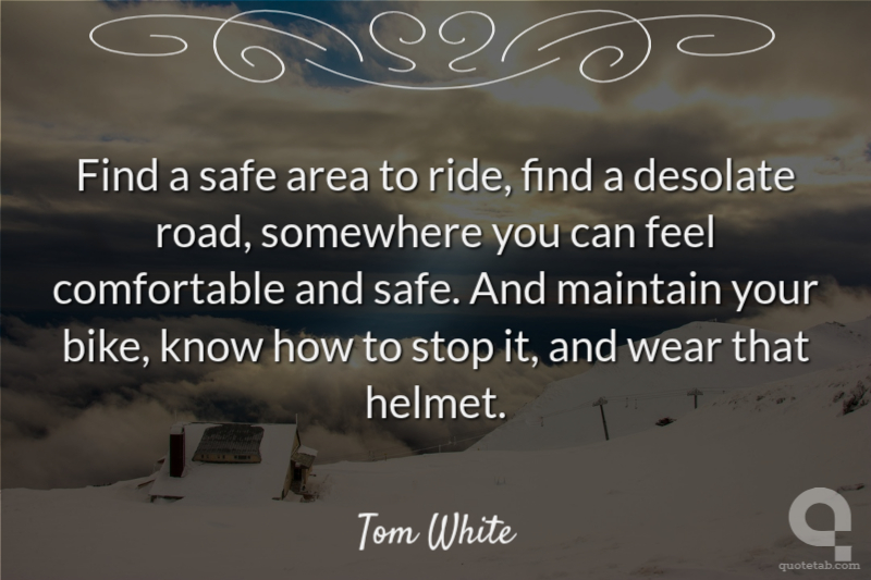 Find a safe area to ride, find a desolate road, somewhere you can feel comfortable and safe. And maintain your bike, know how to stop it, and wear that helmet.