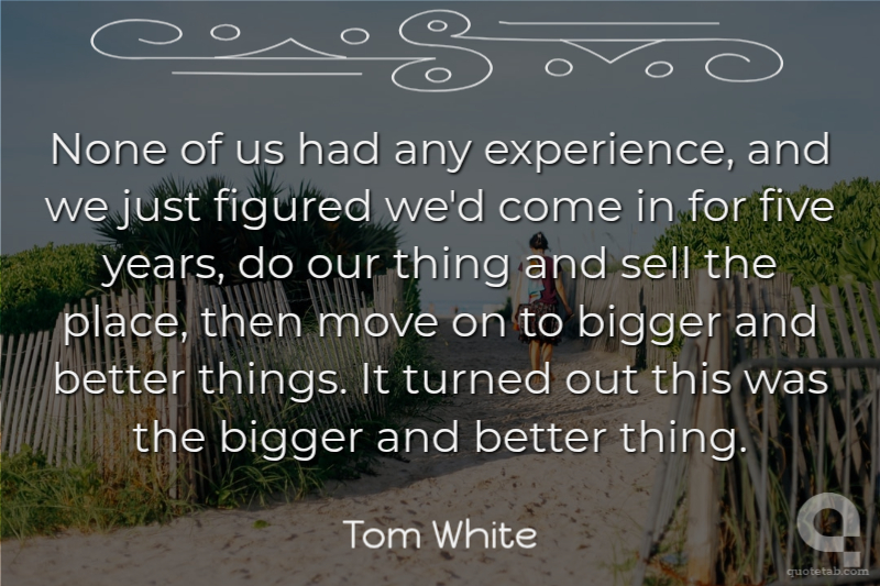 None of us had any experience, and we just figured we'd come in for five years, do our thing and sell the place, then move on to bigger and better things. It turned out this was the bigger and better thing.