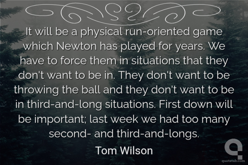 It will be a physical run-oriented game which Newton has played for years. We have to force them in situations that they don't want to be in. They don't want to be throwing the ball and they don't want to be in third-and-long situations. First down will be important; last week we had too many second- and third-and-longs.