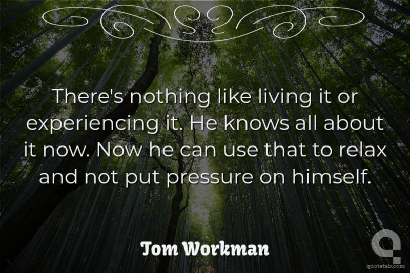 There's nothing like living it or experiencing it. He knows all about it now. Now he can use that to relax and not put pressure on himself.