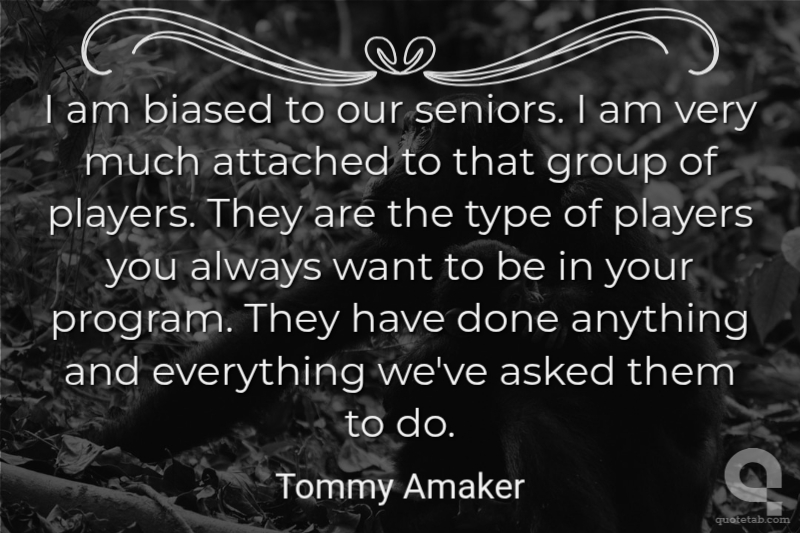 I am biased to our seniors. I am very much attached to that group of players. They are the type of players you always want to be in your program. They have done anything and everything we've asked them to do.