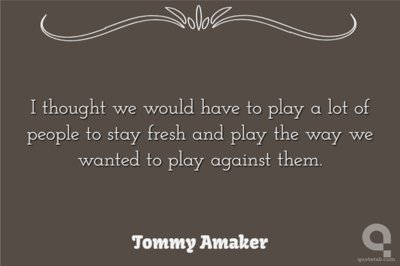 I thought we would have to play a lot of people to stay fresh and play the way we wanted to play against them.