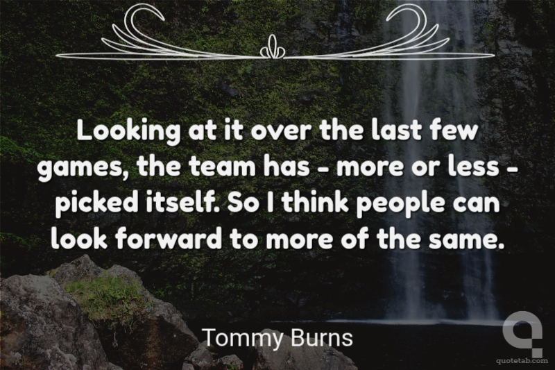 Looking at it over the last few games, the team has - more or less - picked itself. So I think people can look forward to more of the same.