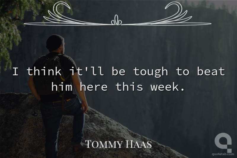 I think it'll be tough to beat him here this week.