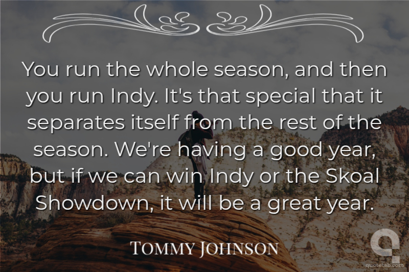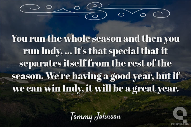 You run the whole season and then you run Indy, ... It's that special that it separates itself from the rest of the season. We're having a good year, but if we can win Indy, it will be a great year.