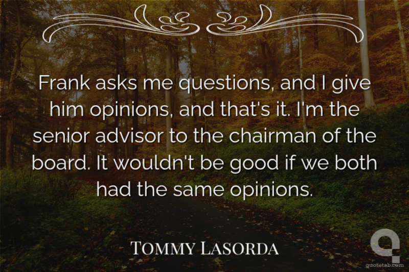 Frank asks me questions, and I give him opinions, and that's it. I'm the senior advisor to the chairman of the board. It wouldn't be good if we both had the same opinions.