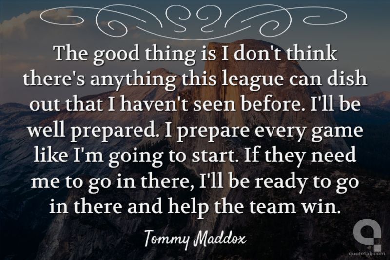 The good thing is I don't think there's anything this league can dish out that I haven't seen before. I'll be well prepared. I prepare every game like I'm going to start. If they need me to go in there, I'll be ready to go in there and help the team win.