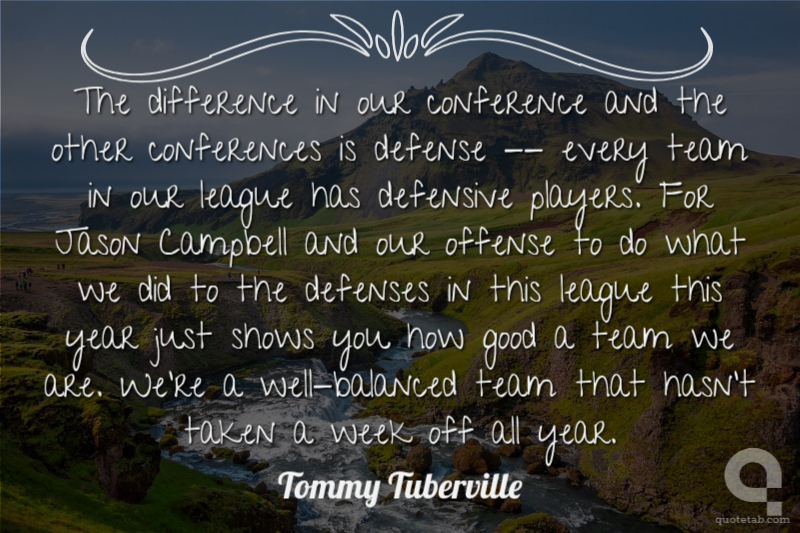The difference in our conference and the other conferences is defense -- every team in our league has defensive players. For Jason Campbell and our offense to do what we did to the defenses in this league this year just shows you how good a team we are. We're a well-balanced team that hasn't taken a week off all year.