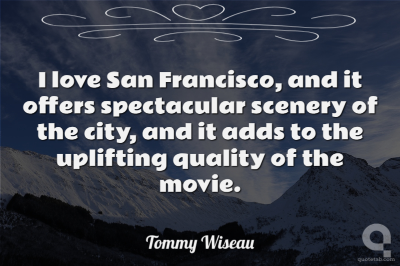 I love San Francisco, and it offers spectacular scenery of the city, and it adds to the uplifting quality of the movie.