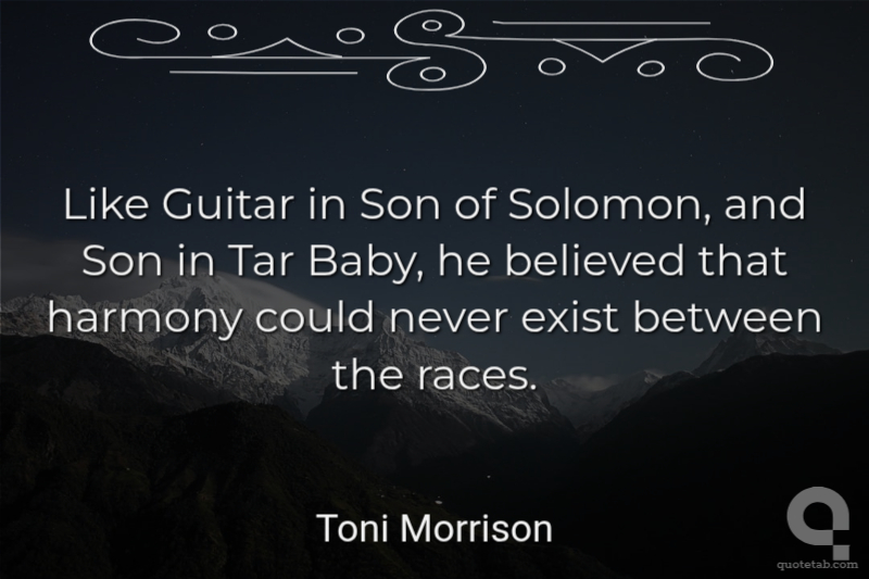 Like Guitar in Son of Solomon, and Son in Tar Baby, he believed that harmony could never exist between the races.
