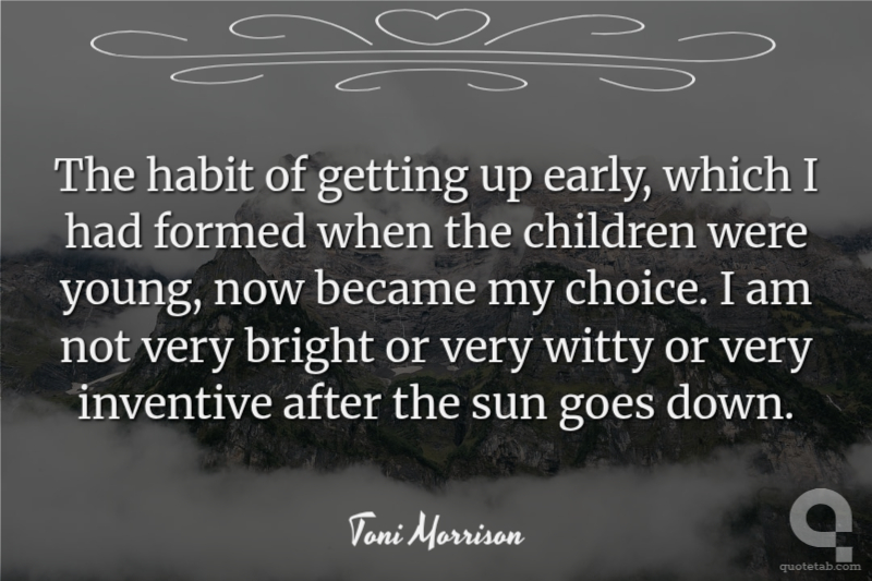 The habit of getting up early, which I had formed when the children were young, now became my choice. I am not very bright or very witty or very inventive after the sun goes down.