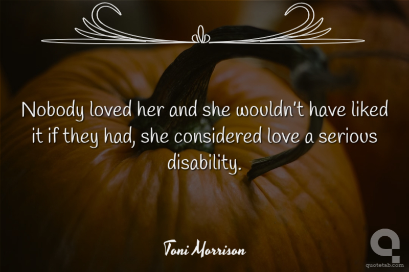 Nobody loved her and she wouldn’t have liked it if they had, she considered love a serious disability.