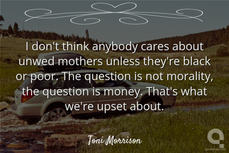 I don't think anybody cares about unwed mothers unless they're black or poor. The question is not morality, the question is money. That's what we're upset about.