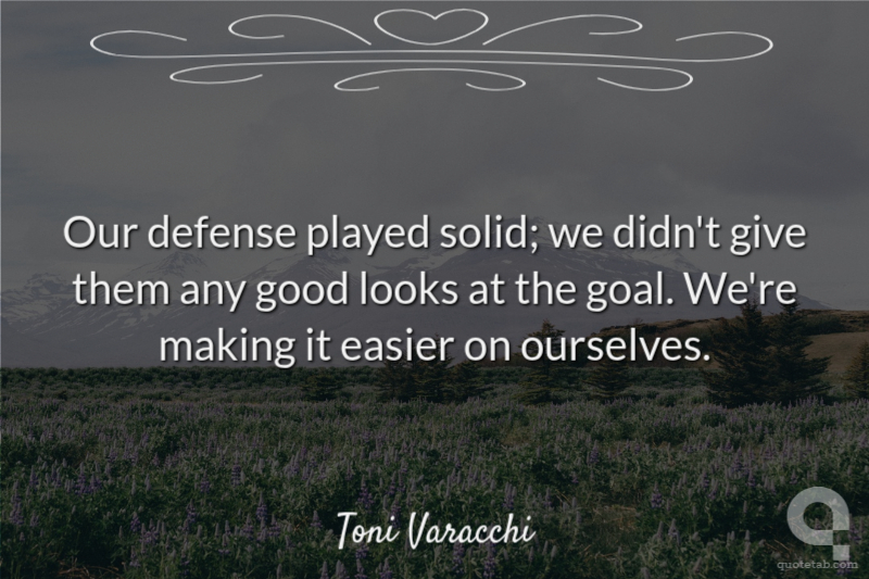 Our defense played solid; we didn't give them any good looks at the goal. We're making it easier on ourselves.