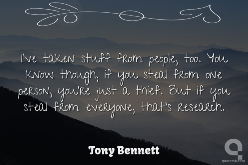 I've taken stuff from people, too. You know though, if you steal from one person, you're just a thief. But if you steal from everyone, that's research.