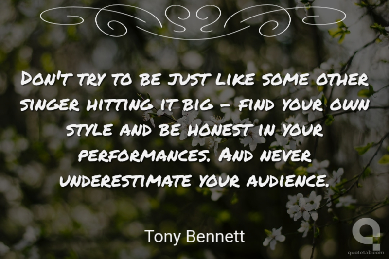 Don't try to be just like some other singer hitting it big - find your own style and be honest in your performances. And never underestimate your audience.