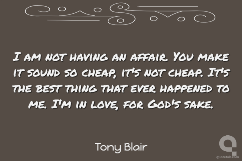 I am not having an affair. You make it sound so cheap, it's not cheap. It's the best thing that ever happened to me. I'm in love, for God's sake.