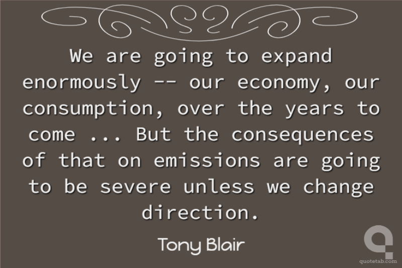 We are going to expand enormously -- our economy, our consumption, over the years to come ... But the consequences of that on emissions are going to be severe unless we change direction.