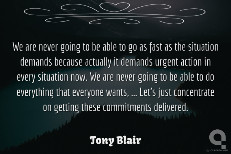 We are never going to be able to go as fast as the situation demands because actually it demands urgent action in every situation now. We are never going to be able to do everything that everyone wants, ... Let's just concentrate on getting these commitments delivered.