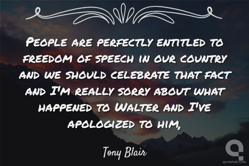 People are perfectly entitled to freedom of speech in our country and we should celebrate that fact and I'm really sorry about what happened to Walter and I've apologized to him,