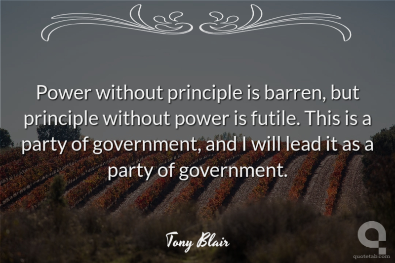 Power without principle is barren, but principle without power is futile. This is a party of government, and I will lead it as a party of government.