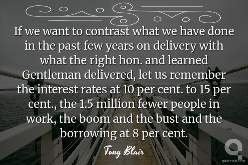 If we want to contrast what we have done in the past few years on delivery with what the right hon. and learned Gentleman delivered, let us remember the interest rates at 10 per cent. to 15 per cent., the 1.5 million fewer people in work, the boom and the bust and the borrowing at 8 per cent.