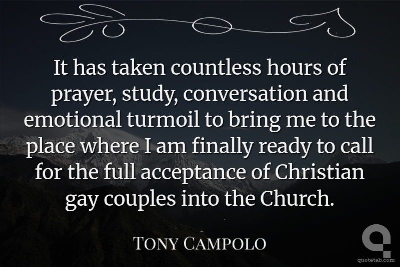 It has taken countless hours of prayer, study, conversation and emotional turmoil to bring me to the place where I am finally ready to call for the full acceptance of Christian gay couples into the Church.