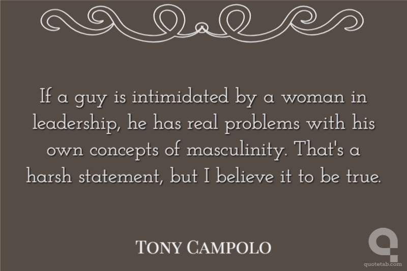 If a guy is intimidated by a woman in leadership, he has real problems with his own concepts of masculinity. That's a harsh statement, but I believe it to be true.