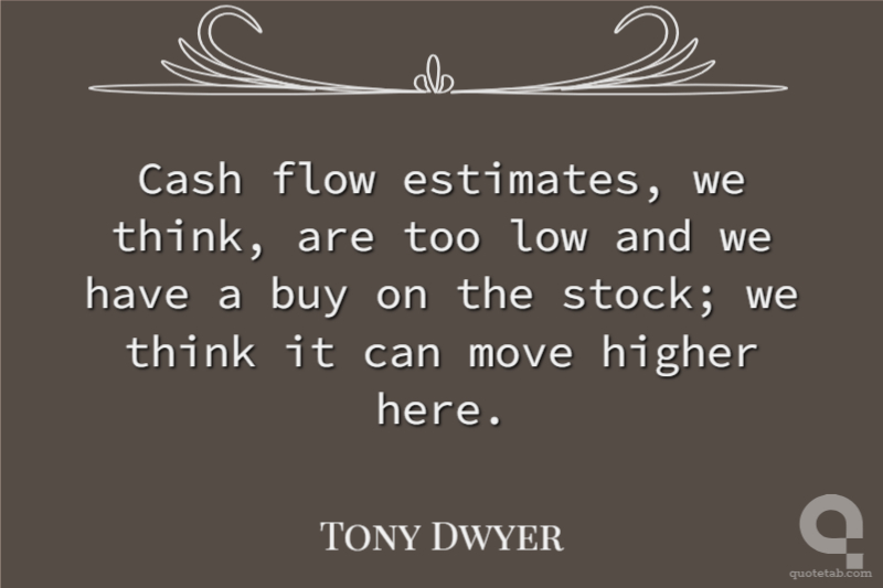 Cash flow estimates, we think, are too low and we have a buy on the stock; we think it can move higher here.