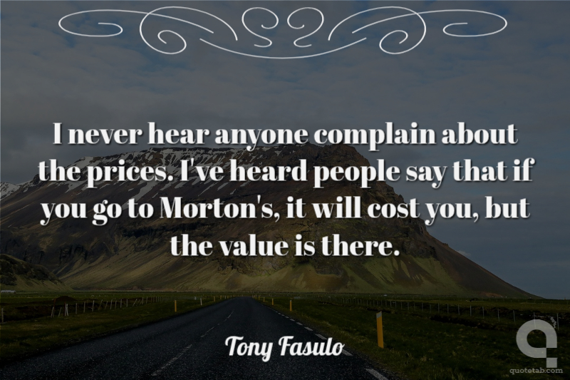 I never hear anyone complain about the prices. I've heard people say that if you go to Morton's, it will cost you, but the value is there.