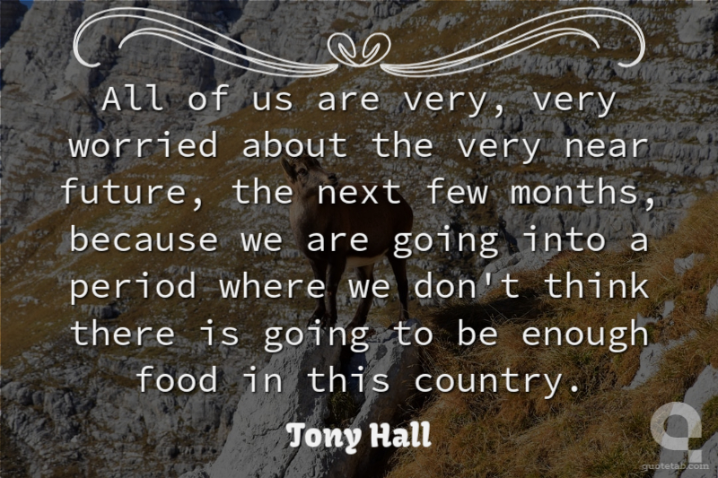 All of us are very, very worried about the very near future, the next few months, because we are going into a period where we don't think there is going to be enough food in this country.