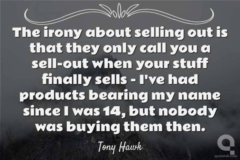 The irony about selling out is that they only call you a sell-out when your stuff finally sells - I've had products bearing my name since I was 14, but nobody was buying them then.