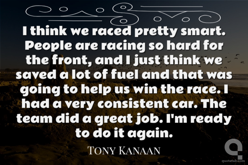 I think we raced pretty smart. People are racing so hard for the front, and I just think we saved a lot of fuel and that was going to help us win the race. I had a very consistent car. The team did a great job. I'm ready to do it again.