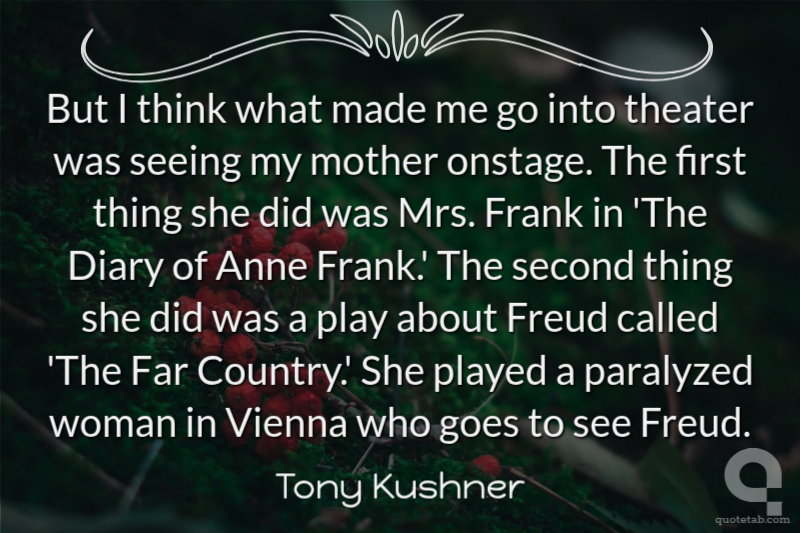 But I think what made me go into theater was seeing my mother onstage. The first thing she did was Mrs. Frank in 'The Diary of Anne Frank.' The second thing she did was a play about Freud called 'The Far Country.' She played a paralyzed woman in Vienna who goes to see Freud.