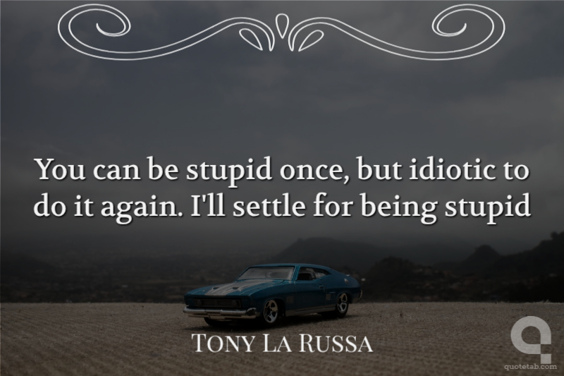 You can be stupid once, but idiotic to do it again. I'll settle for being stupid