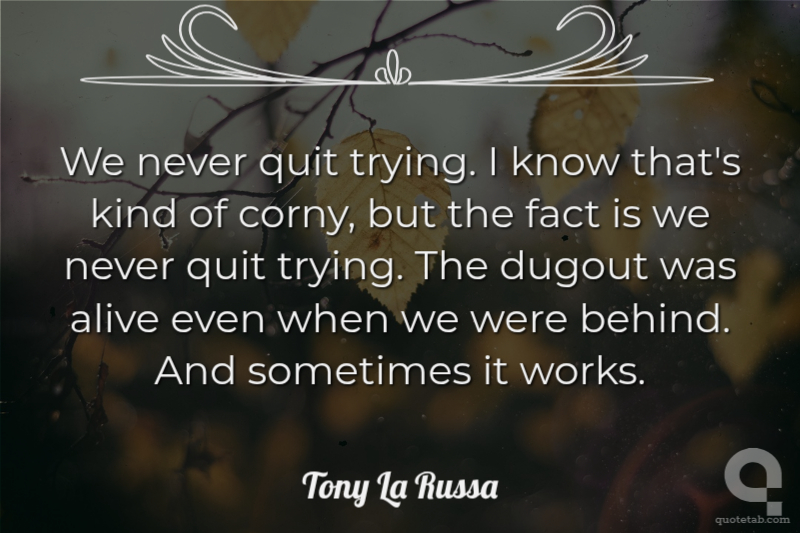We never quit trying. I know that's kind of corny, but the fact is we never quit trying. The dugout was alive even when we were behind. And sometimes it works.