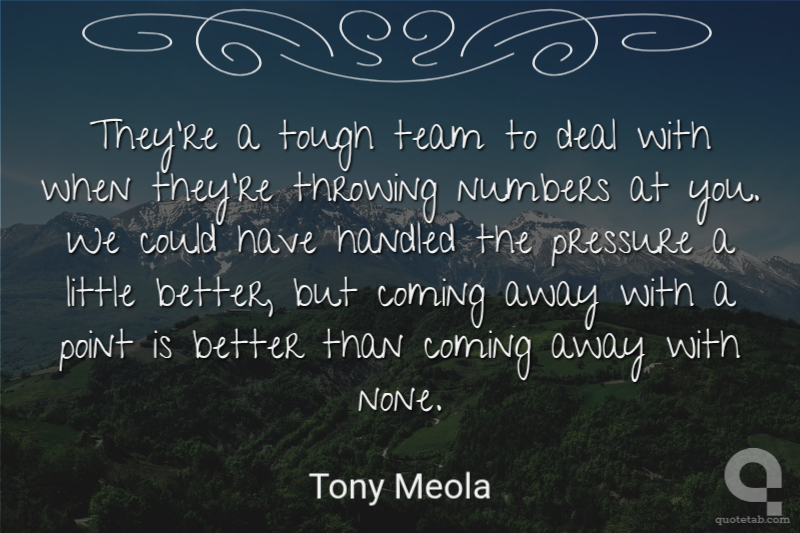 They're a tough team to deal with when they're throwing numbers at you. We could have handled the pressure a little better, but coming away with a point is better than coming away with none.