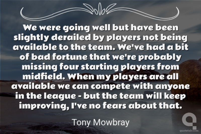 We were going well but have been slightly derailed by players not being available to the team. We've had a bit of bad fortune that we're probably missing four starting players from midfield. When my players are all available we can compete with anyone in the league - but the team will keep improving, I've no fears about that.