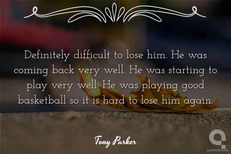 Definitely difficult to lose him. He was coming back very well. He was starting to play very well. He was playing good basketball so it is hard to lose him again.