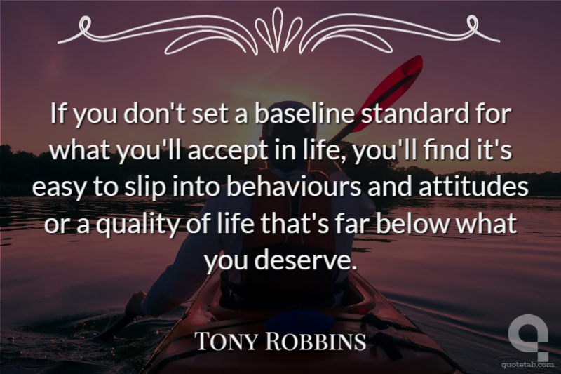 If you don't set a baseline standard for what you'll accept in life, you'll find it's easy to slip into behaviours and attitudes or a quality of life that's far below what you deserve.