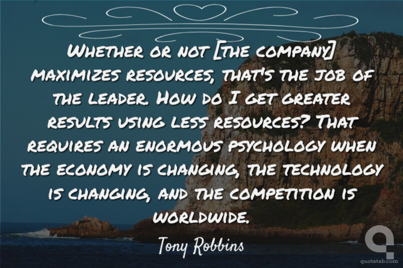 Whether or not [the company] maximizes resources, that's the job of the leader. How do I get greater results using less resources? That requires an enormous psychology when the economy is changing, the technology is changing, and the competition is worldwide.