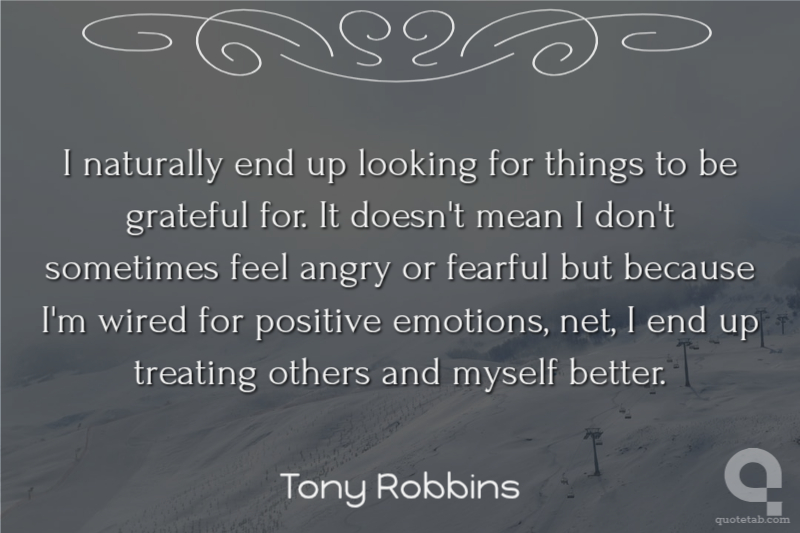 I naturally end up looking for things to be grateful for. It doesn't mean I don't sometimes feel angry or fearful but because I'm wired for positive emotions, net, I end up treating others and myself better.