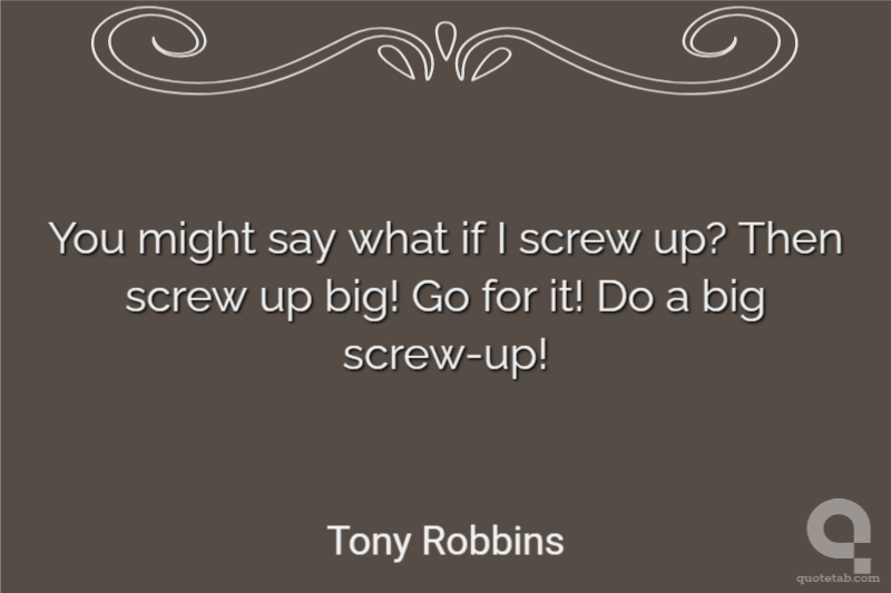 You might say what if I screw up? Then screw up big! Go for it! Do a big screw-up!