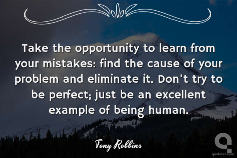 Take the opportunity to learn from your mistakes: find the cause of your problem and eliminate it. Don't try to be perfect; just be an excellent example of being human.